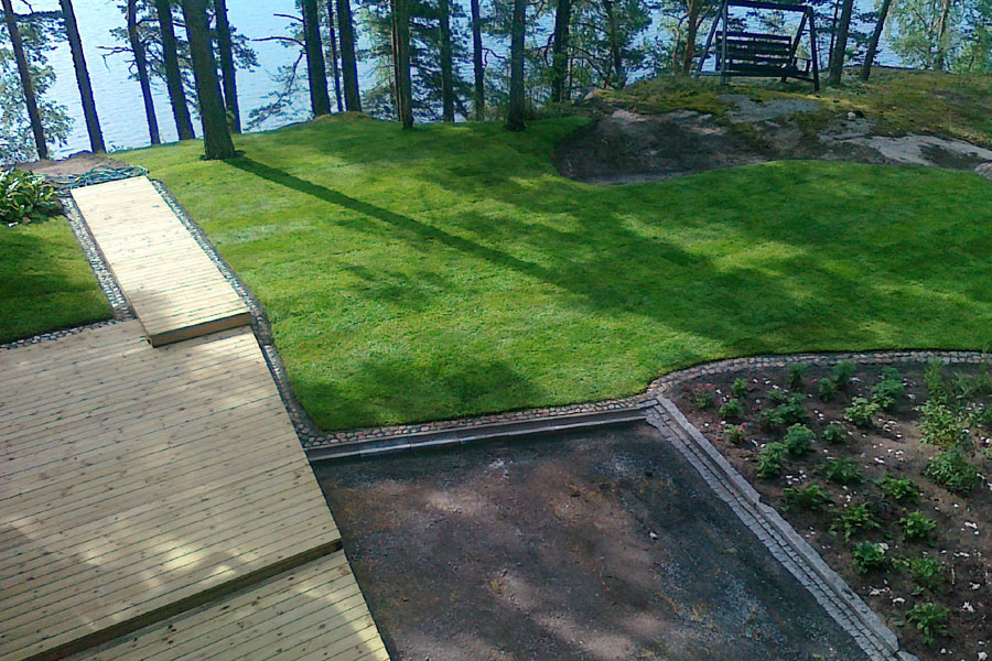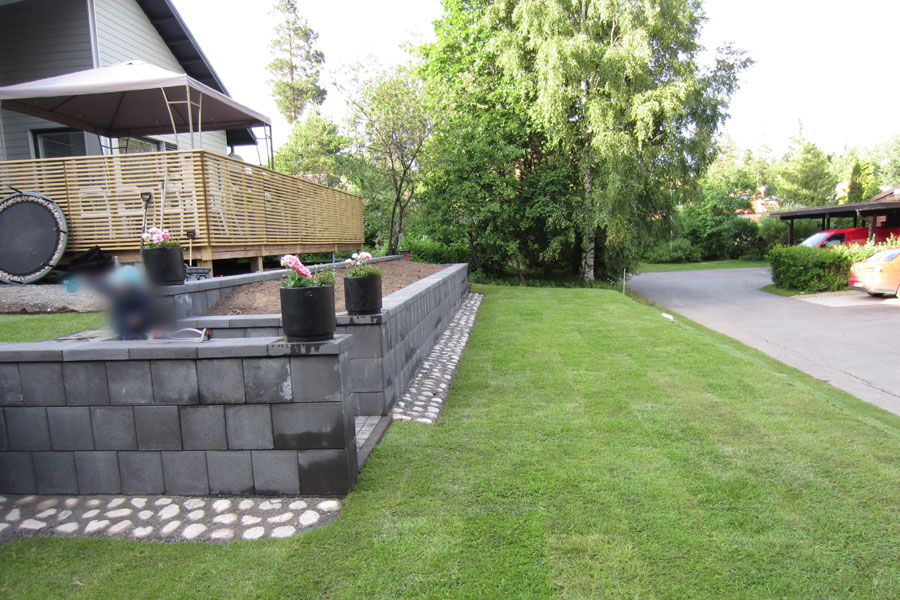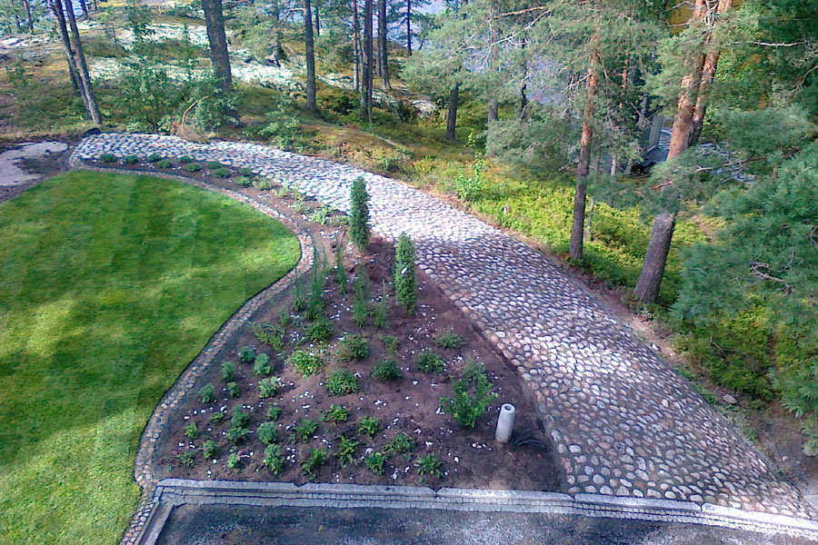 - kaikki piha-alueen maarakennus, viherrakennus, kiveys ja viimeistely työt, robottiruohonleikkureiden asennus ja käyttöönotto-opastus
